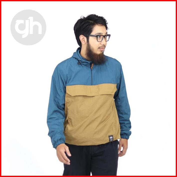 Gh Fanorak Jaket Windbreaker Jaket Colorblock Jaket Anorak Cagoule Distro Unisex Nyaman Polyester Pria Casual Tebal Cowo