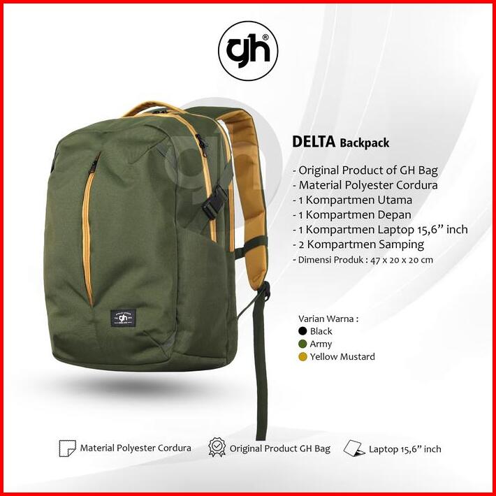 Gh-bag Delta Backpack Tas Ransel Sekolah Tas Kuliah Tas Kerja Tas Travelling Tas Laptop 15 6 Inch