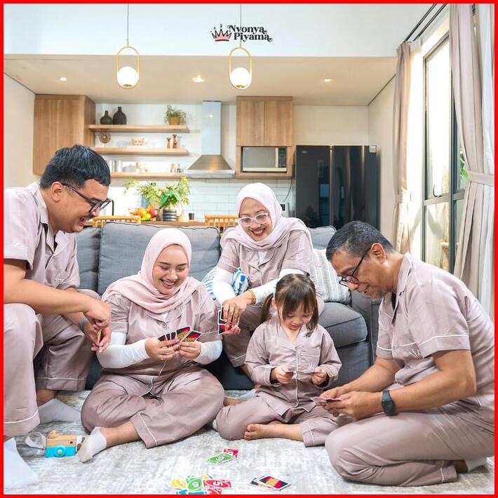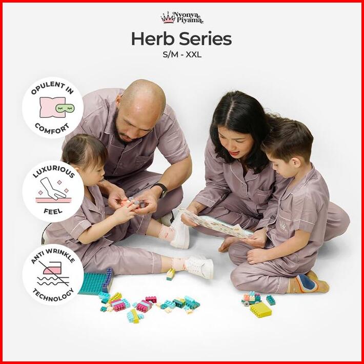 Best Seller Nyonya Piyama Poly Bamboo Family Set Tamarind Herb Baju Panjang Pendek Santai Setelan Polos Baju Couple Ibu