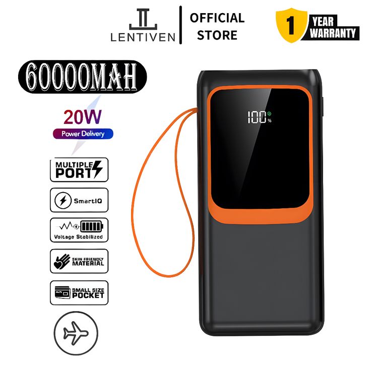 Powerbank Fast Charging LENTIVEN Powerbank 60000 mAh Fast Charging With Kabel Type C Ios Senter Y20