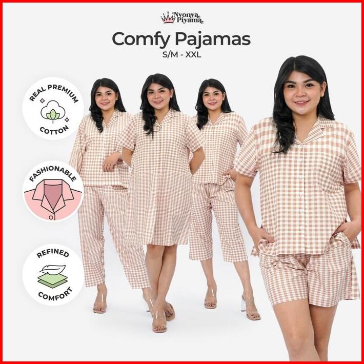 Nyonya Piyama Set Katun Comfy Deva Brown