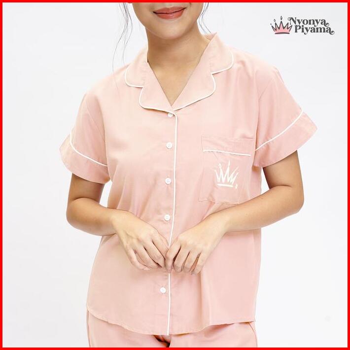 Nyonya Piyama Katun Set Couple Classic Signature Polos Tulip