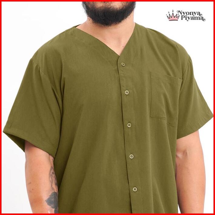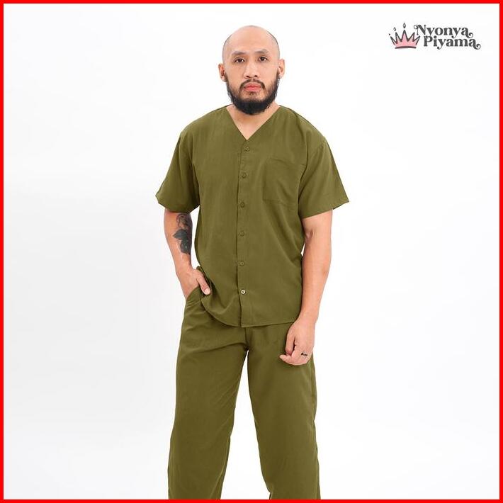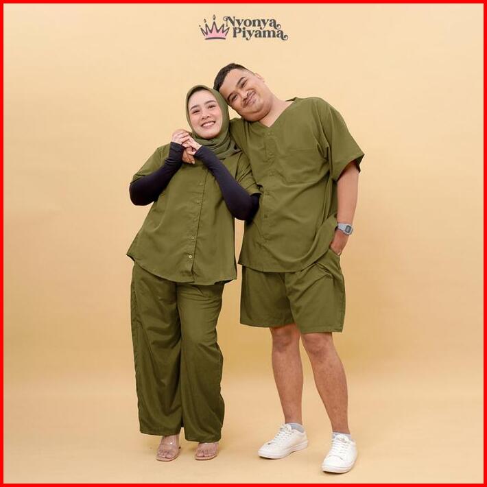 Best Seller Nyonya Piyama Poly Bamboo Couple Set Olive Cozy Baju Celana Panjang Pendek Santai Wanita Casual Polos Pasang