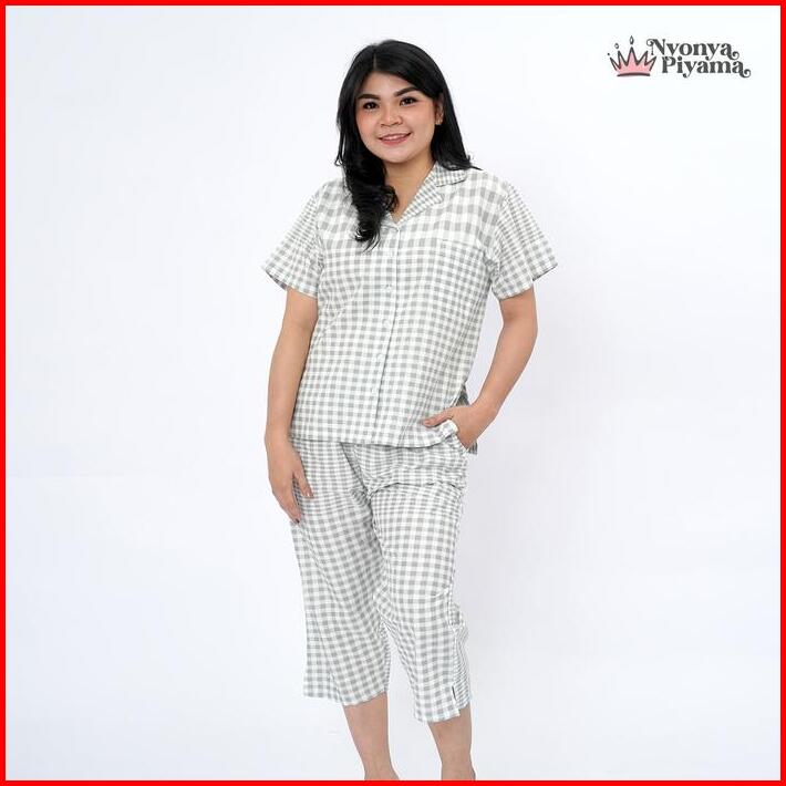 Nyonya Piyama Katun Set Couple Comfy Deva Grey