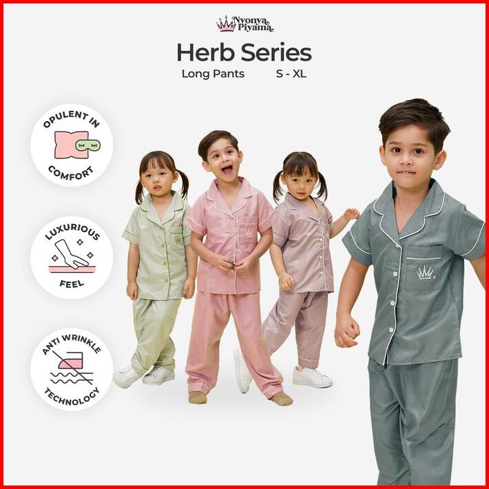 Best Seller Nyonya Piyama Poly Bamboo Set Piyama Celana Panjang Anak Polos Herb Baju Motif Fashion Polos Musim Dingin Po