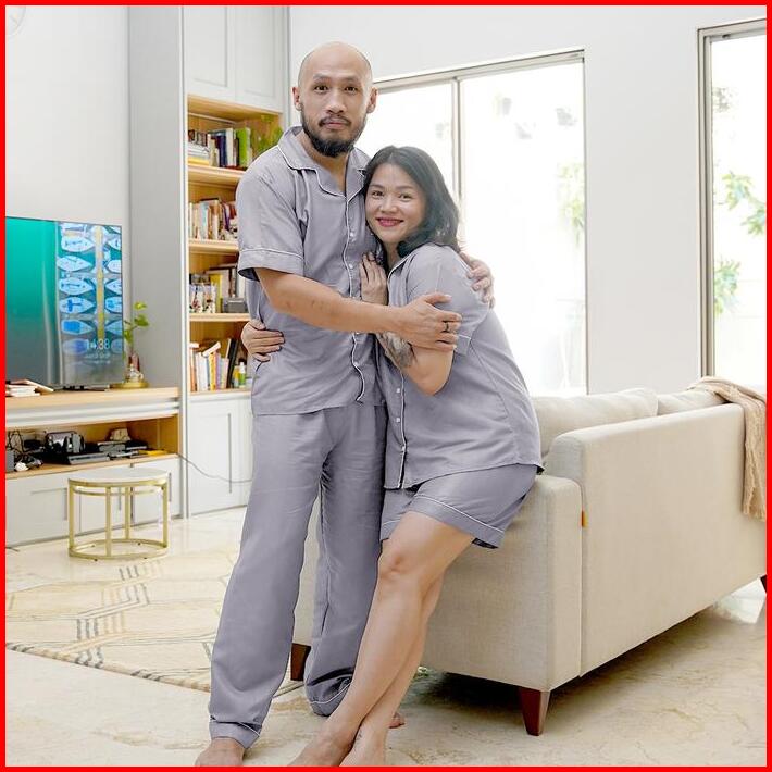 Best Seller Nyonya Piyama Poly Bamboo Set Piyama Couple Peppercorn Polos Herb Baju Panjang Setelan Celana Kombinasi Sant