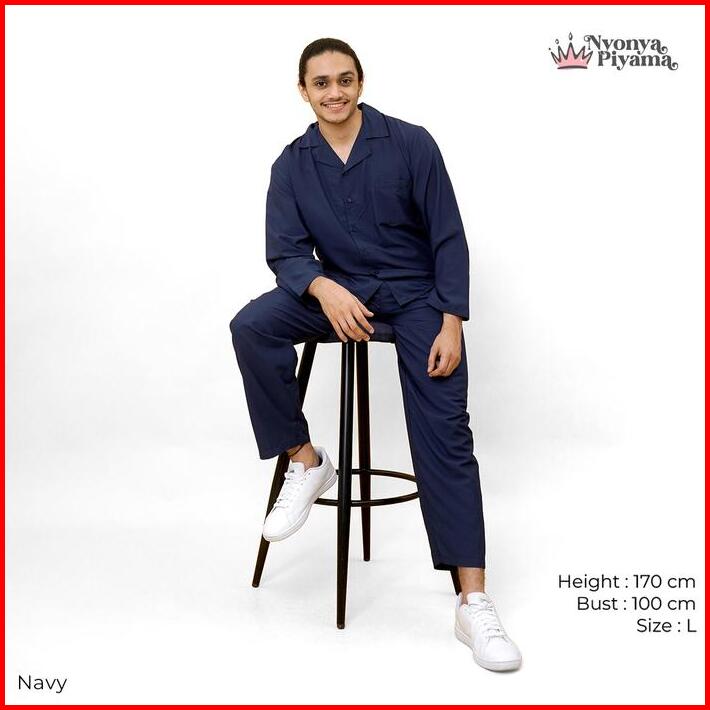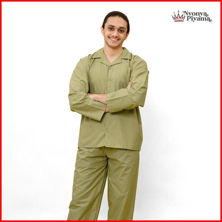 Best Seller Nyonya Piyama Katun Classic Signature Set Lengan Panjang Polos Pria Celana Tidur