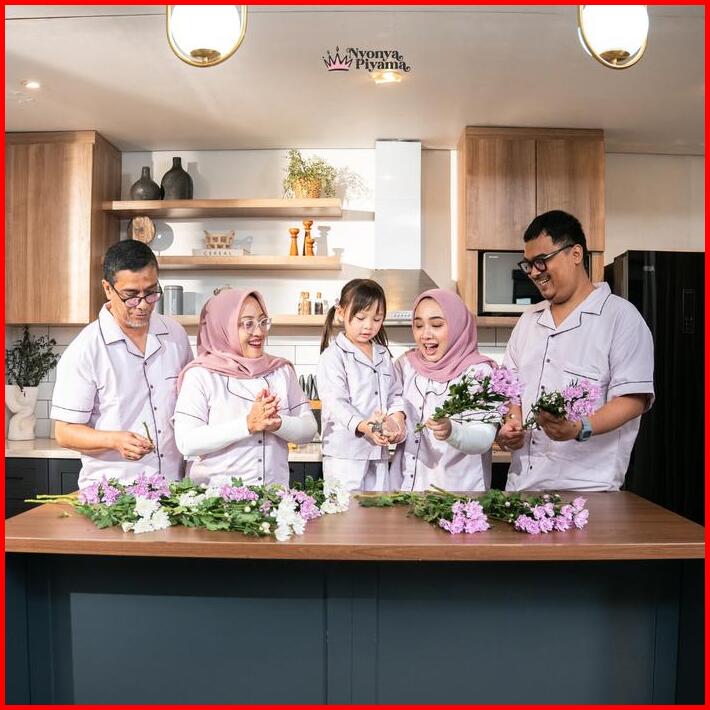 Best Seller Nyonya Piyama Poly Bamboo Set Piyama Couple Black Pepper Polos Herb Baju Panjang Setelan Celana Santai Pasan