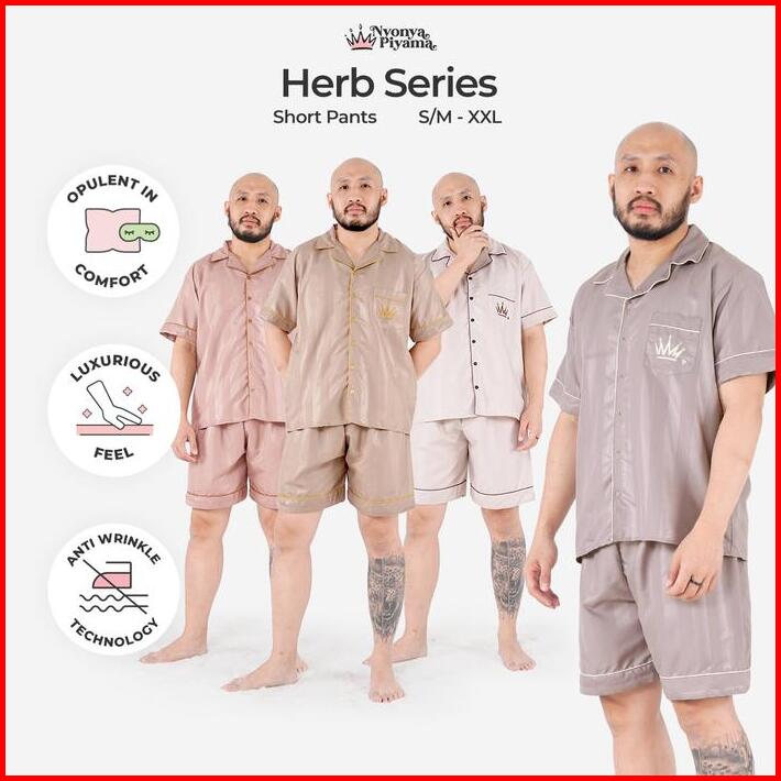 Best Seller Nyonya Piyama Poly Bamboo Set Piyama Celana Pendek Pria Polos Herb Series Tidur Dewasa Cowok Polos Musim Pan