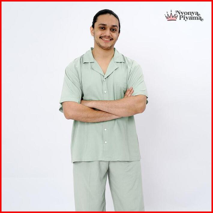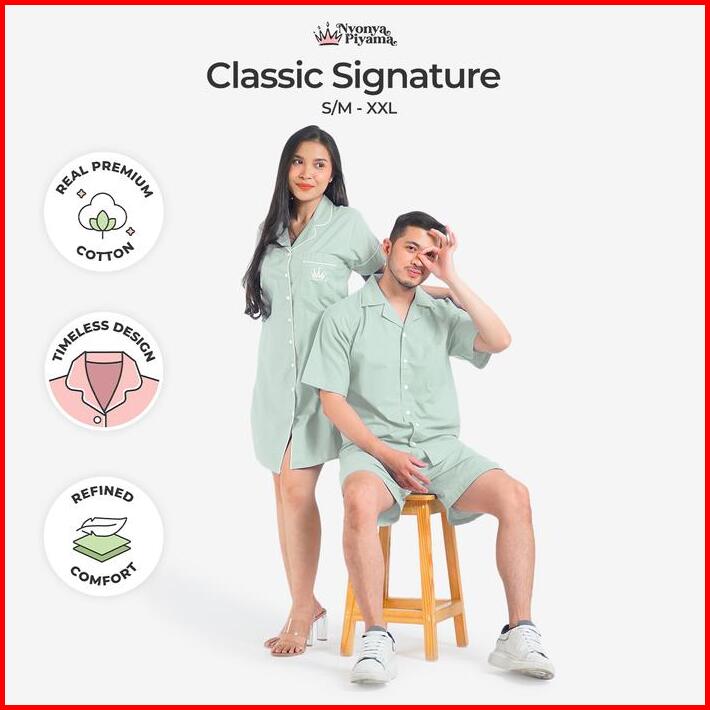 Nyonya Piyama Katun Set Couple Classic Signature Polos Sea Foam