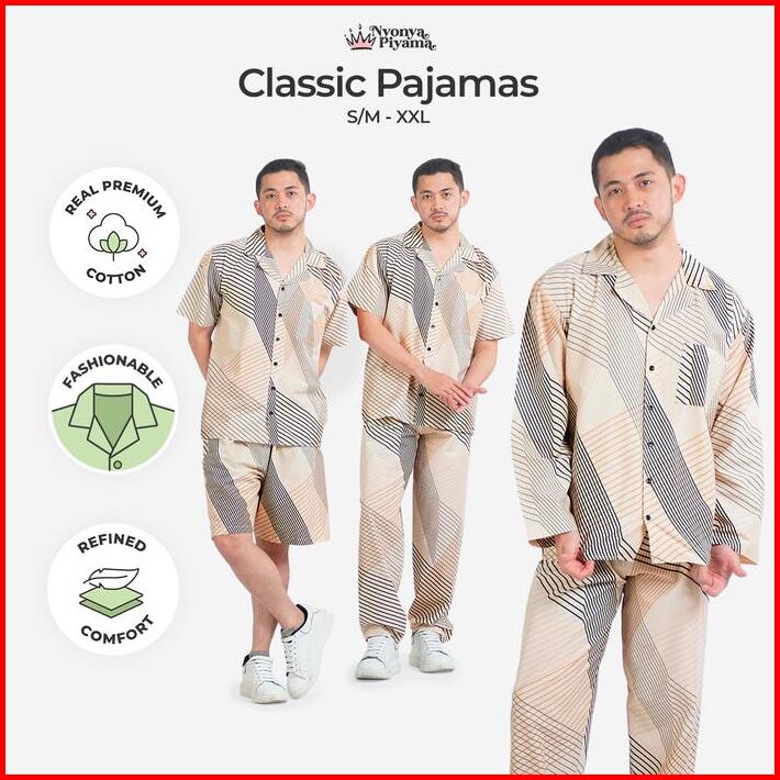 Nyonya Piyama Set Katun Pria Classic Parker