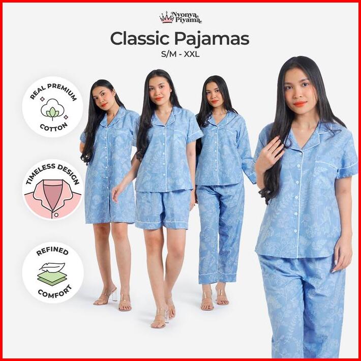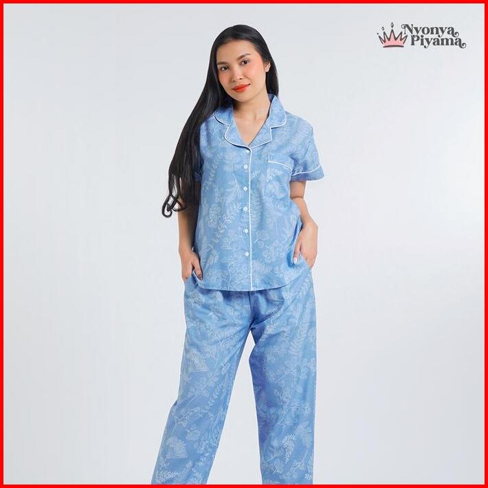 Nyonya Piyama Set Katun Classic Jenn Blue