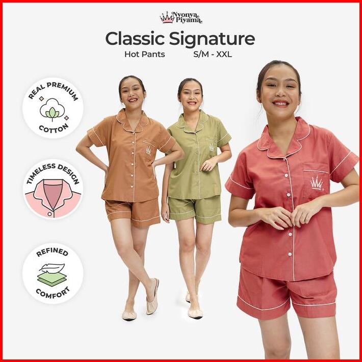 Best Seller Nyonya Piyama Katun Set Piyama Celana Pendek Polos Classic Signature Baju Nyaman Setelan Wanita Tidur Dewasa