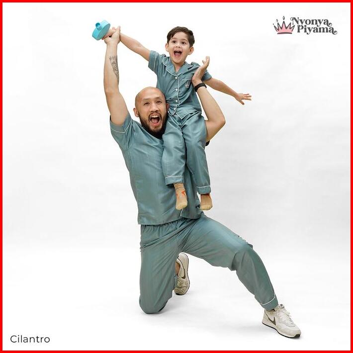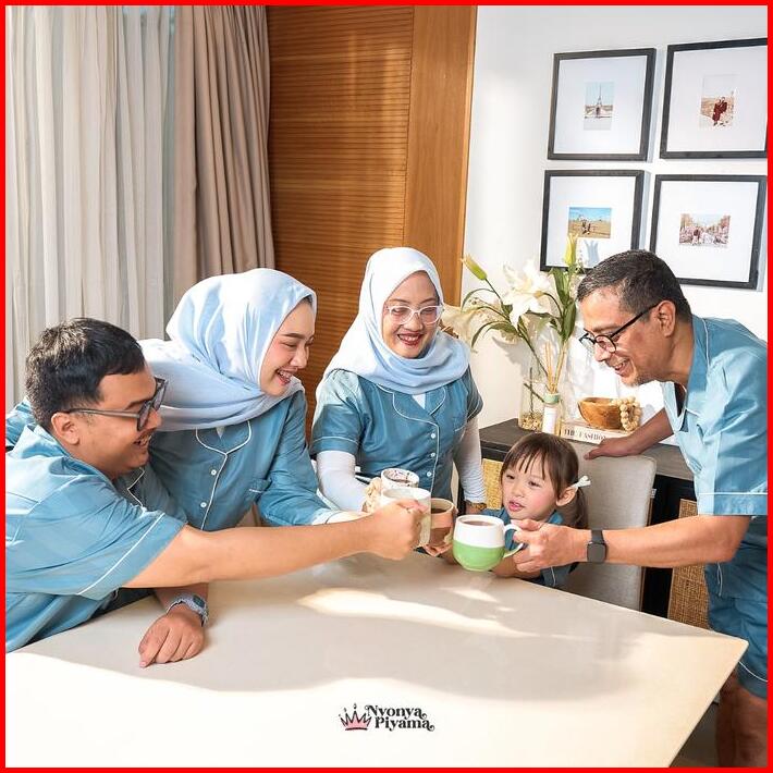Best Seller Nyonya Piyama Poly Bamboo Family Set Cilantro Herb Baju Panjang Pendek Santai Setelan Dress Polos Tidur Wani