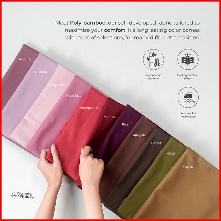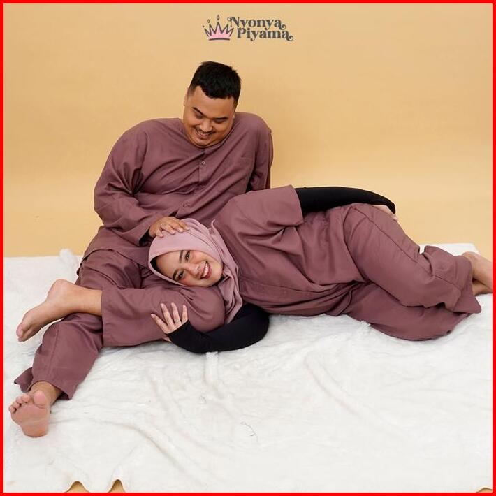Best Seller Nyonya Piyama Poly Bamboo Couple Set Auburn Cozy Baju Basic Motif Panjang Pendek Polos Celana Wanita Atasan