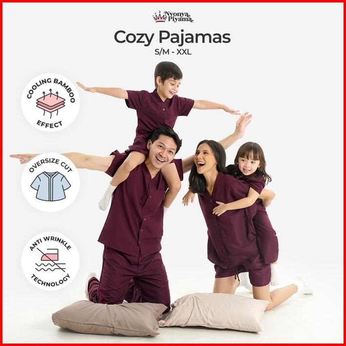Best Seller Nyonya Piyama Poly Bamboo Family Set Plum Cozy Baju Panjang Pendek Dewasa Atasan Mom Daster Polos Wanita Tid