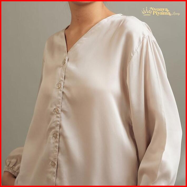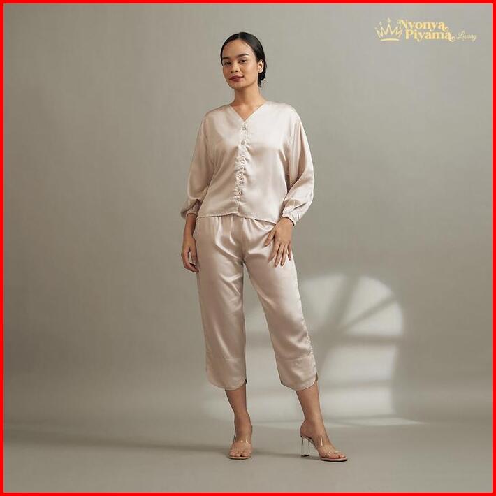 Nyonya Piyama Luxury Bamboo Silk Moon Set Luna Baju Celana Santai Wanita Atasan Basic Panjang Setelan Tidur Nyaman Busui