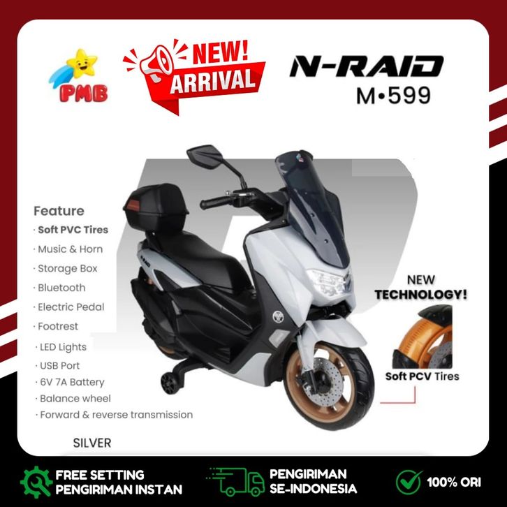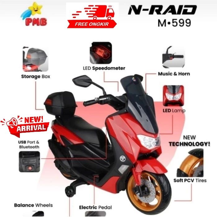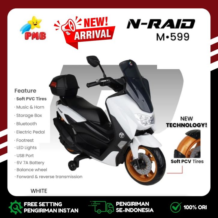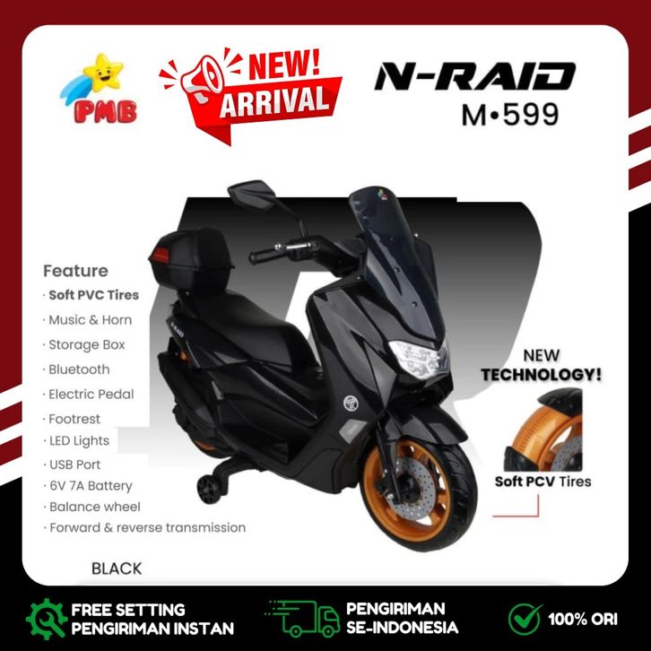 Mainan Motor Aki Anak PMB 599 M599 M-599 NMAX RAID PVC TIRES