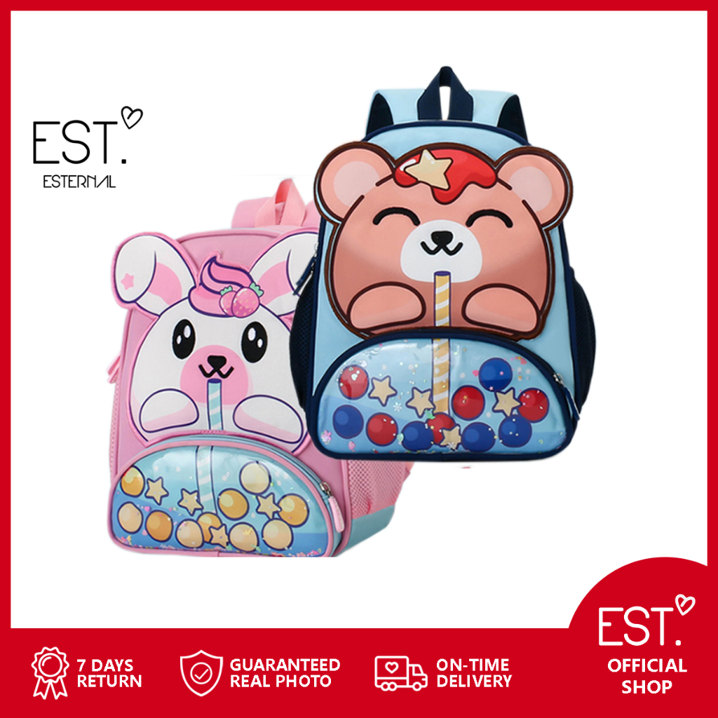 ESTERNAL - TAS SEKOLAH ANAK PEREMPUAN LAKI LAKI PAUD TK BOBA DRINK RABBIT BEAR TAS RANSEL ANAK