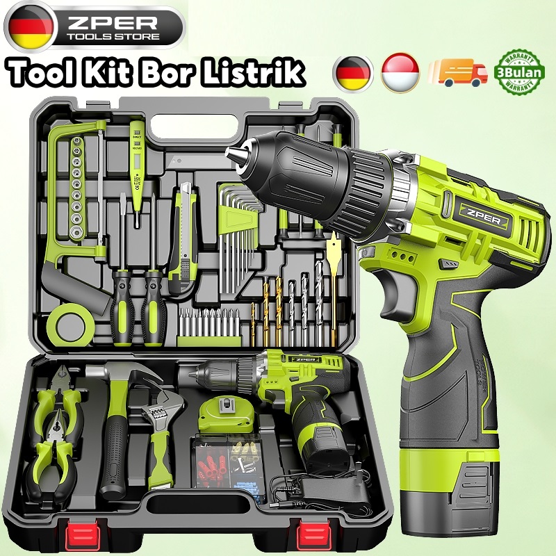 [Star] ALAT TUKANG BANGUNAN SET LENGKAP ZPER 120PCS TOOL BOX BESAR MESIN BOR BATERAI TOOLKIT KOTAK PERKAKAS