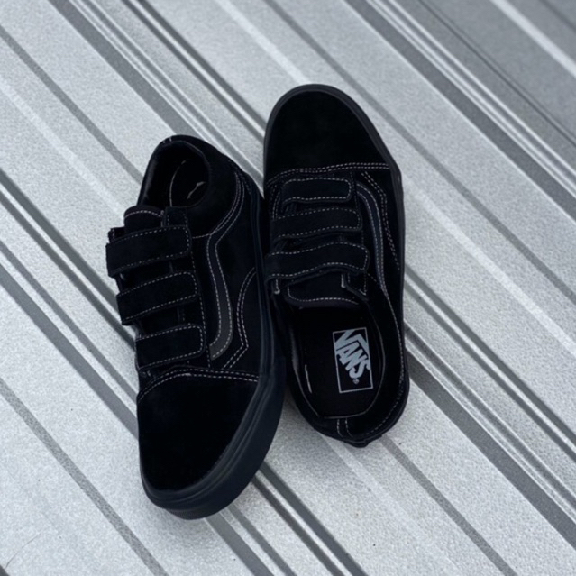 VANS OLD SCHOOL VELCRO BLACK BLACK GLOBAL RELASE | 100% ORIGINAL