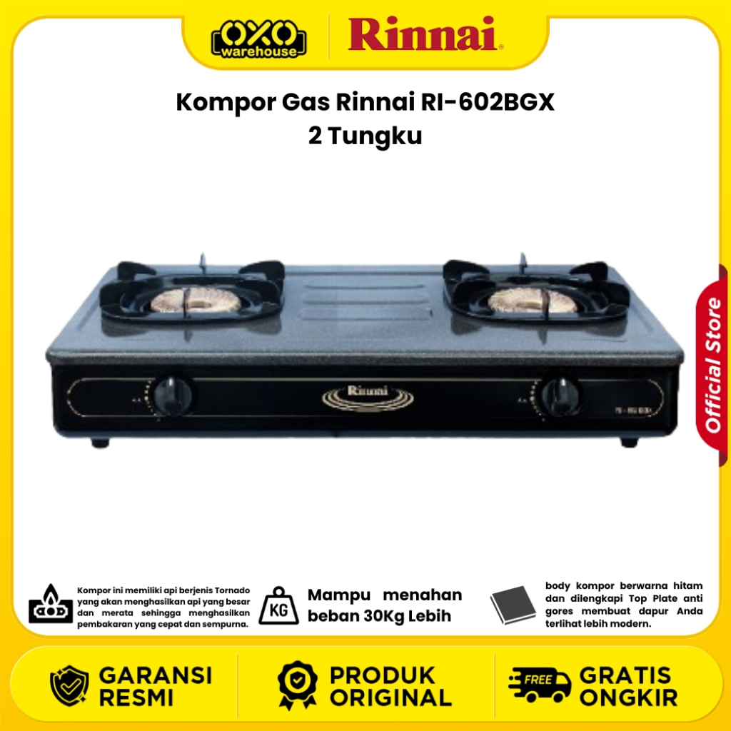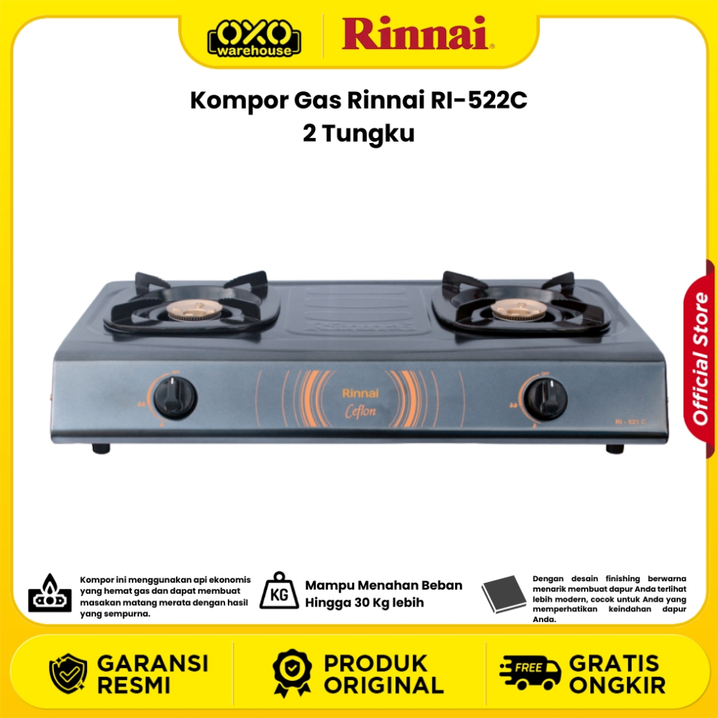 KOMPOR GAS RINNAI 2 TUNGKU TERBARU RI-522C SUN BURNER SLIM HEMAT GAS GARANSI RESMI