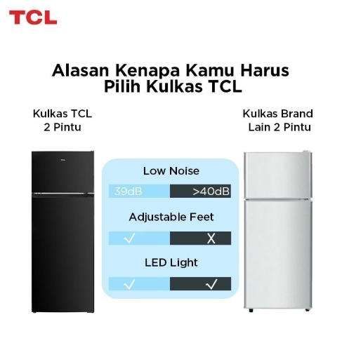 [Mall] TCL Kulkas 2 Pintu 206L – Lemari Es Low Noise, Electronic Control, 90W Hemat Daya & Suara Rendah