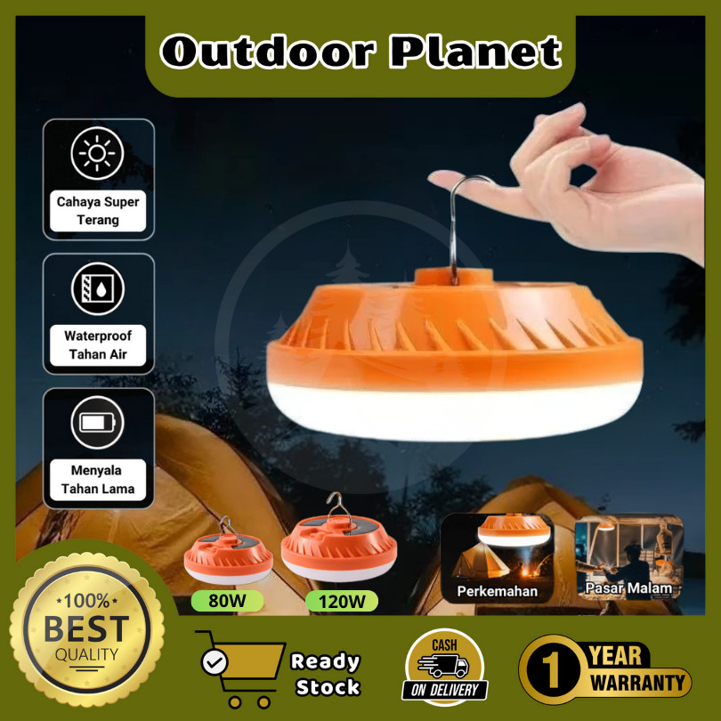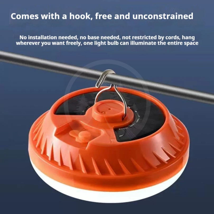Lampu Emergency Tahan Lama LED 3 Mode Cahaya Tenaga Surya + Cas USB Baterai Lithium Nyala 8 Jam Lampu Camping LED Gantung Outdoor Waterproof OP