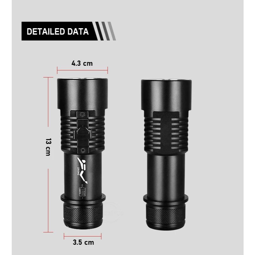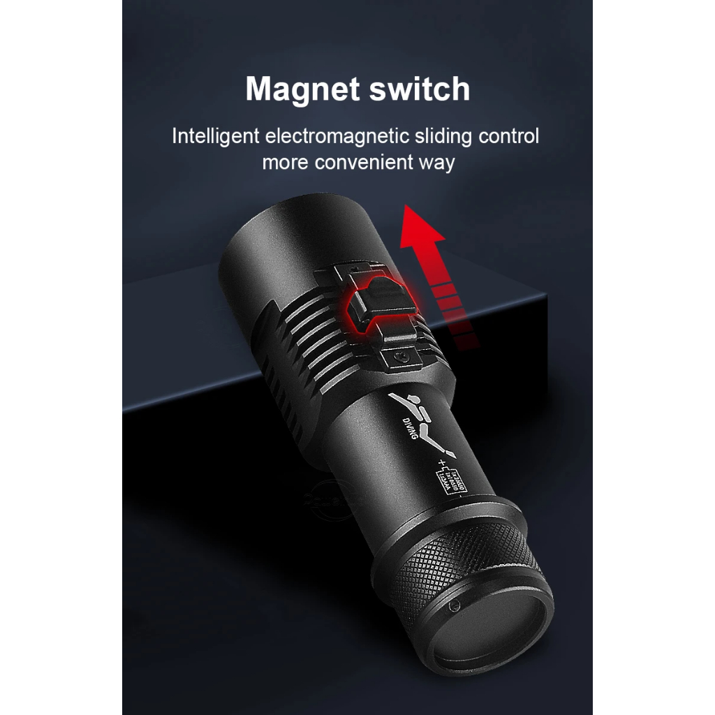Senter Selam LED XHP70 Sangat Terang dengan Magnet Switch Senter Diving Profesional Tahan Air IPX8