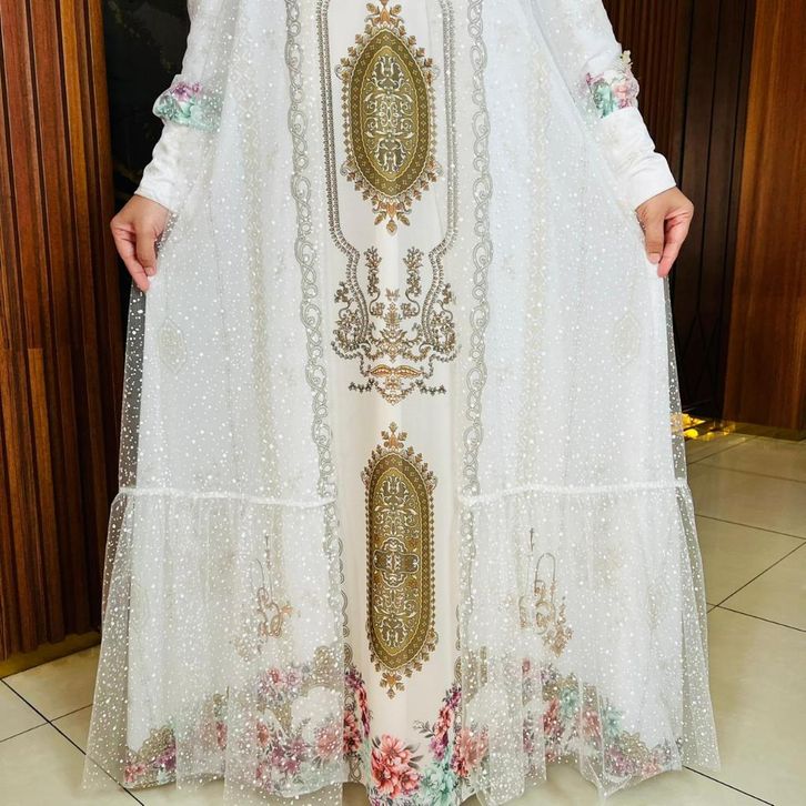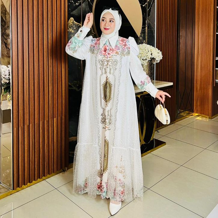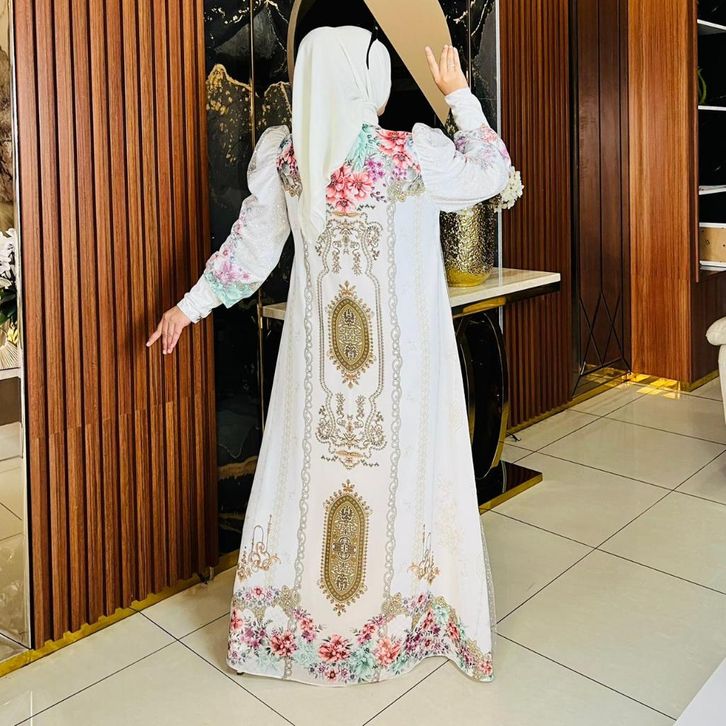 Gamis Lebaran 2026 Angela Ceruty Digital Print Gamis Buka Tutup Elegan Mewah Series Lebaran 2026