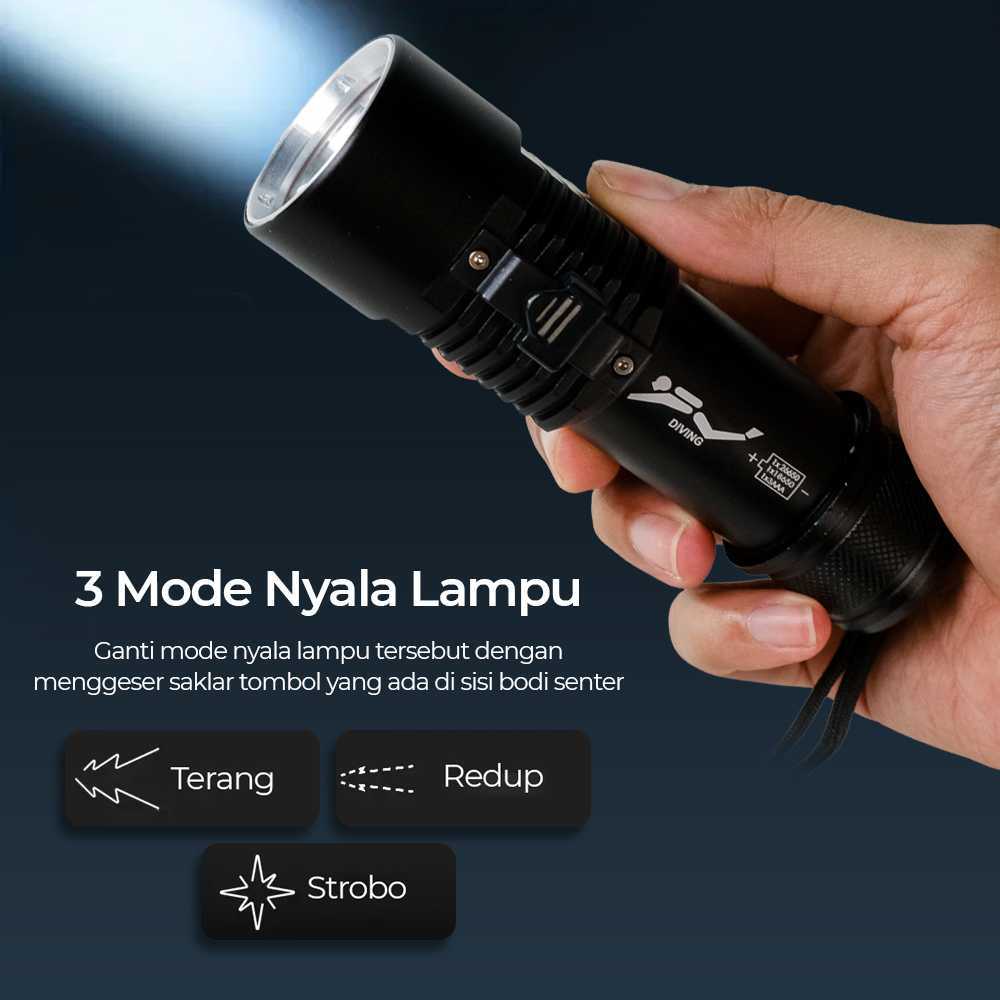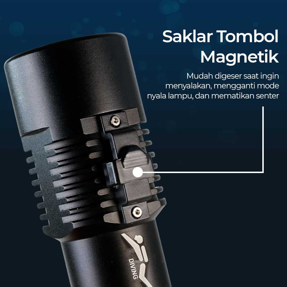 Kirim Cepat Paket Lengkap Senter Selam LED XHP70 Sangat Terang dengan Magnet Switch Senter Diving Profesional Tahan Air IPX8 Lentera Selam dengan Tali Tangan
