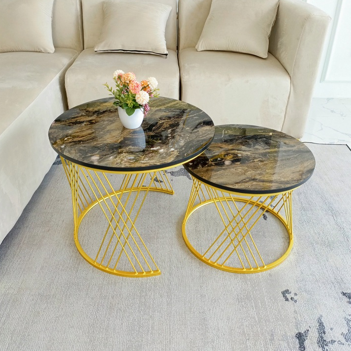 MEJA RUANG TAMU MINIMALIS AESTHETIC MODERN BULAT KAYU KACA LESEHAN UNIK