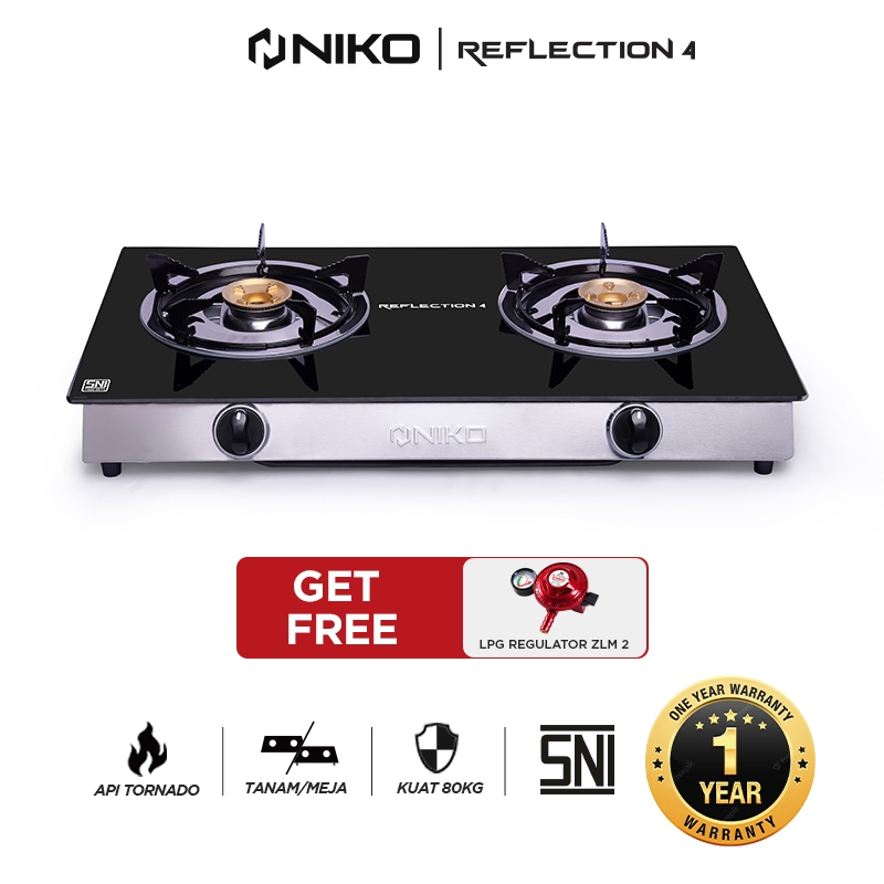 KOMPOR GAS NIKO 2 TUNGKU KACA REFLECTION BUNDLING TERBARU GARANSI RESMI