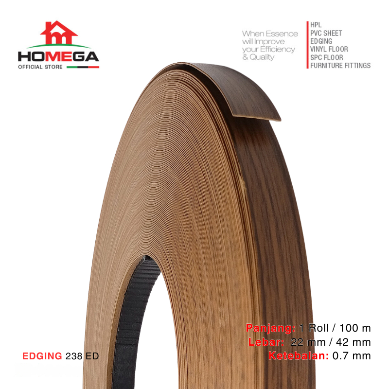 HOMEGA PVC Edging- Pelapis Meja PVC - Tekstur Fancy Teak - Ukuran 22 mm / 42 mm - Kemasan 1 Roll / 100 m