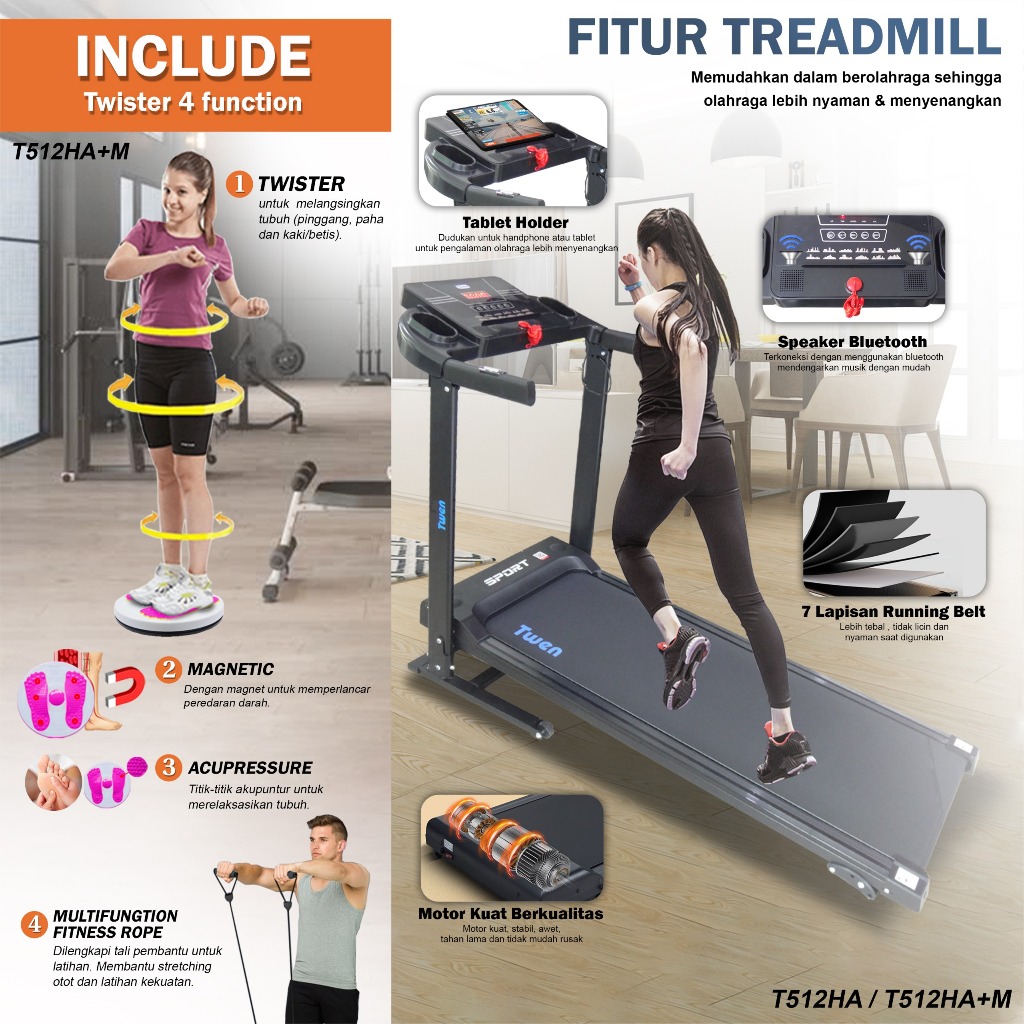 Twen T510MT New T510MTA New T512HA + M Treadmill Listrik Treadmil Elektrik Treadmill Motorized Treadmil