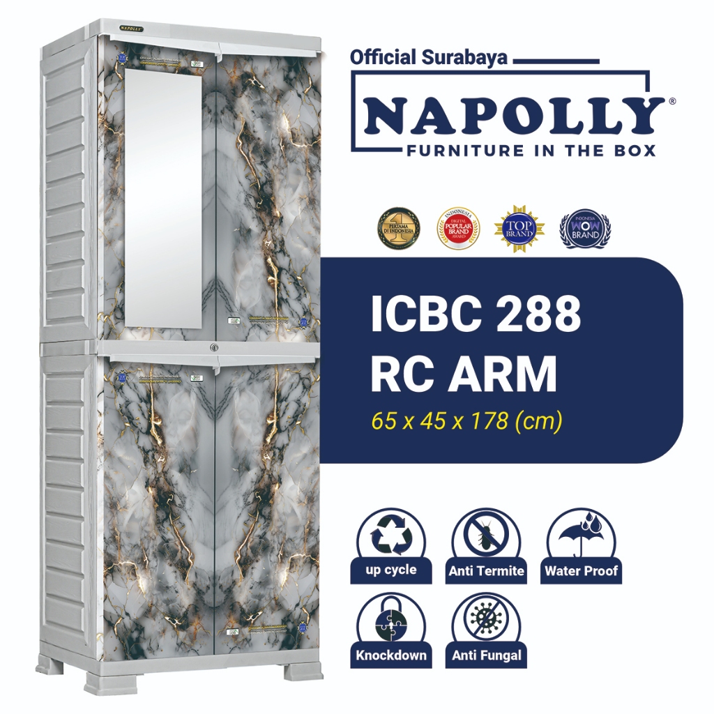 Napolly (Official Surabaya) - Lemari Pakaian Plastik 2 Tower 2 Pintu 5 Susun Rak Dengan Cermin dan Kunci - ICBC 288 RC A
