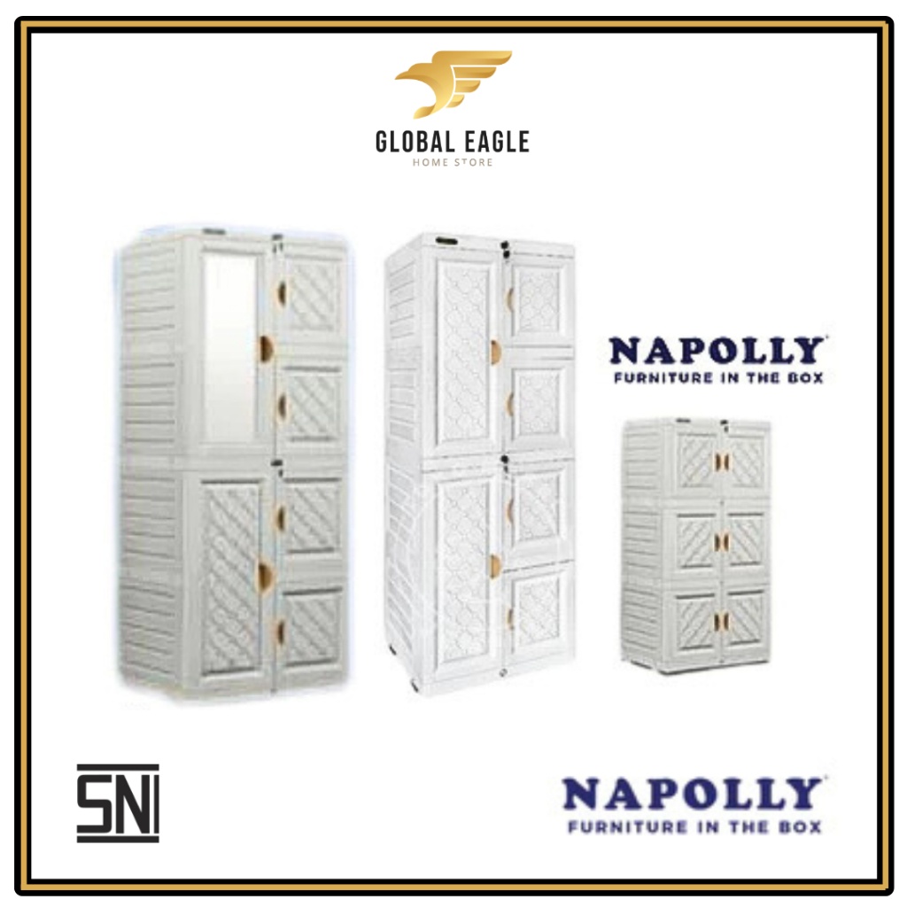 LEMARI BAJU Plastik NAPOLLY Mini Cabinet MCAB 46 ION MCAB-36 MCAB-46C - LEMARI + CERMIN Putih - GHS