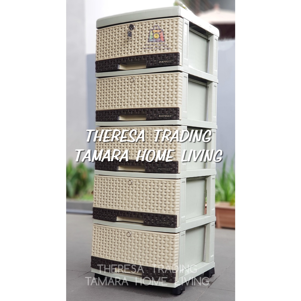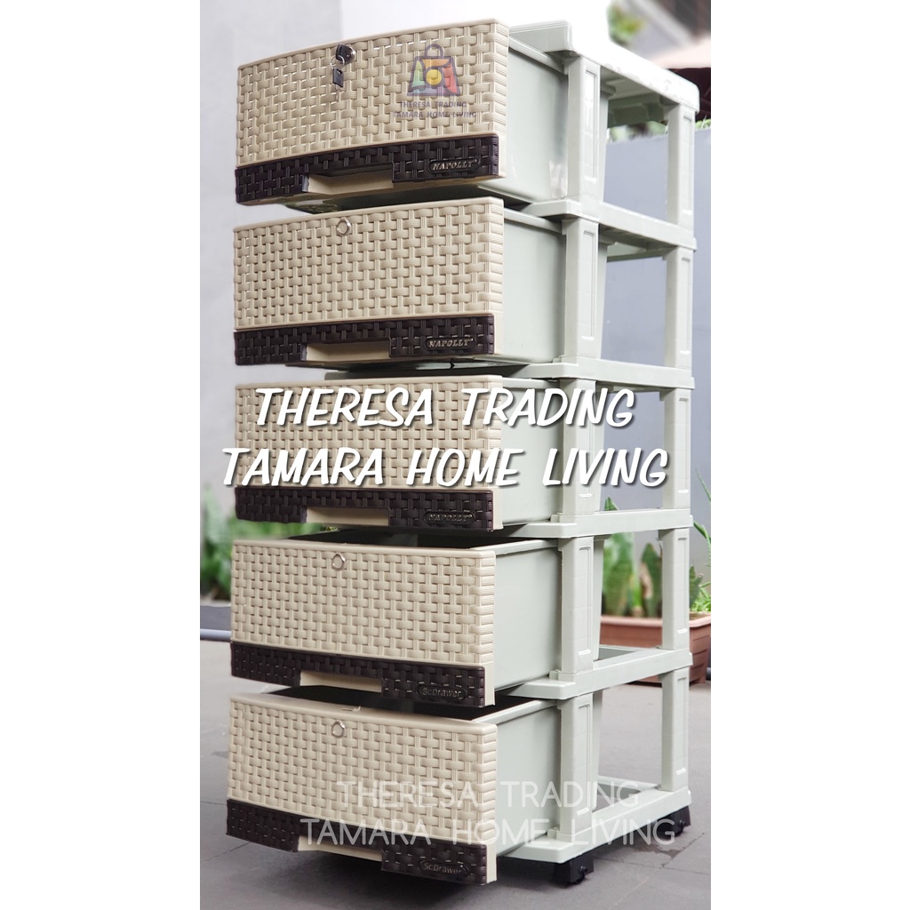 LEMARI PLASTIK NAPOLLY SCD 5 SUSUN 5 DI LENGKAPI RODA DAN KUNCI 3D DESIGN