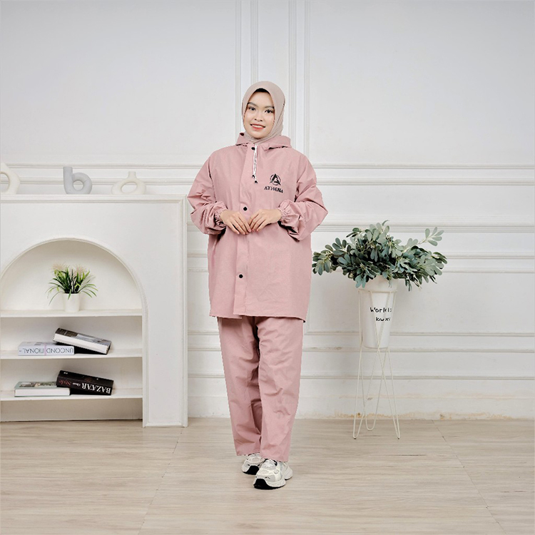 Jas Hujan Pria Wanita Setelan Bahan Waterproof Tebal Kuat Elastis Anti Rembes