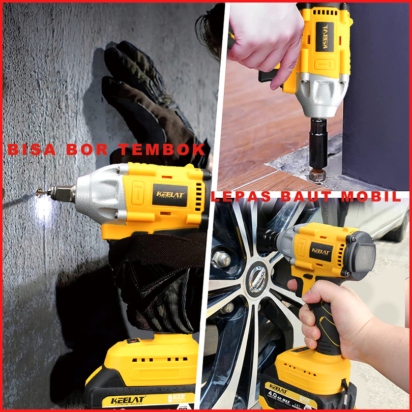 Keelat 88vf 380nm Brushless Mesin Bor Impact Baterai 13mm Cordless Impact Wrench Impact Jv88 2baterai Impek Baterai Tors