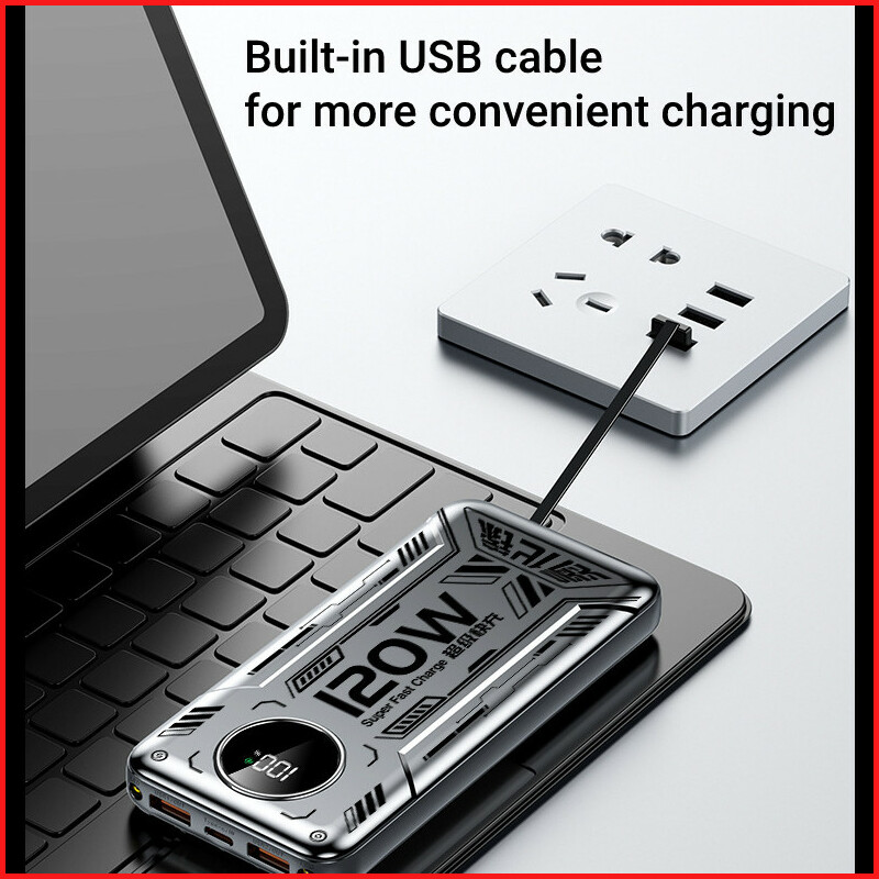 100 Real Powerpowerbank 60000mah 120w Super Fast Charge With 4 Cable Power Bank Led Display Big Battery Fast Charging
