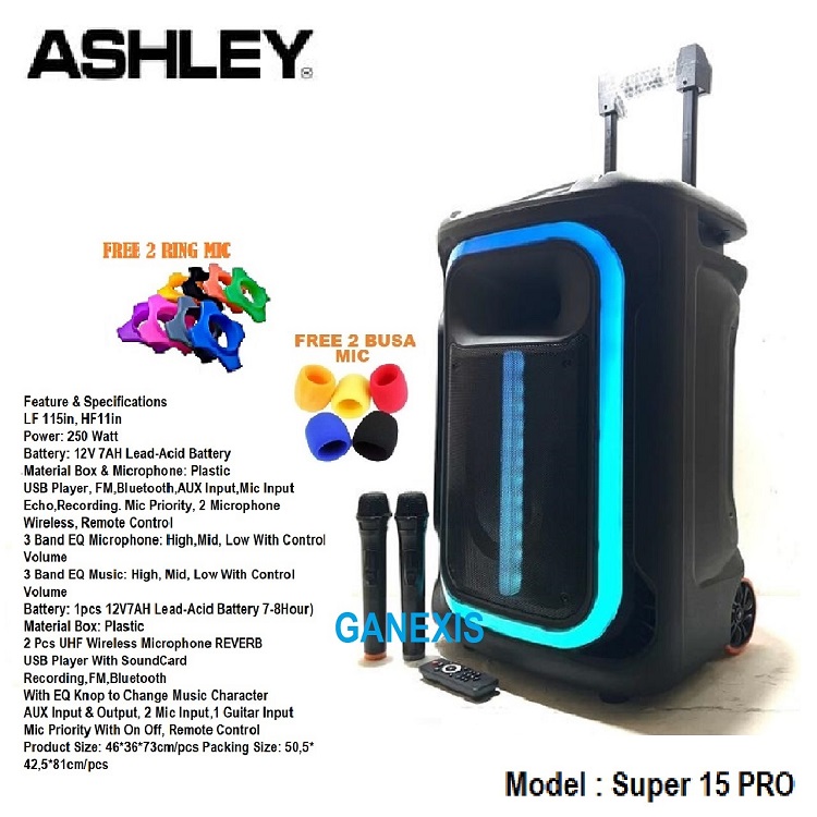 Speaker Portable Wireless Ashley Super 15 PRO Original 15 inch Bluetooth New - TWS