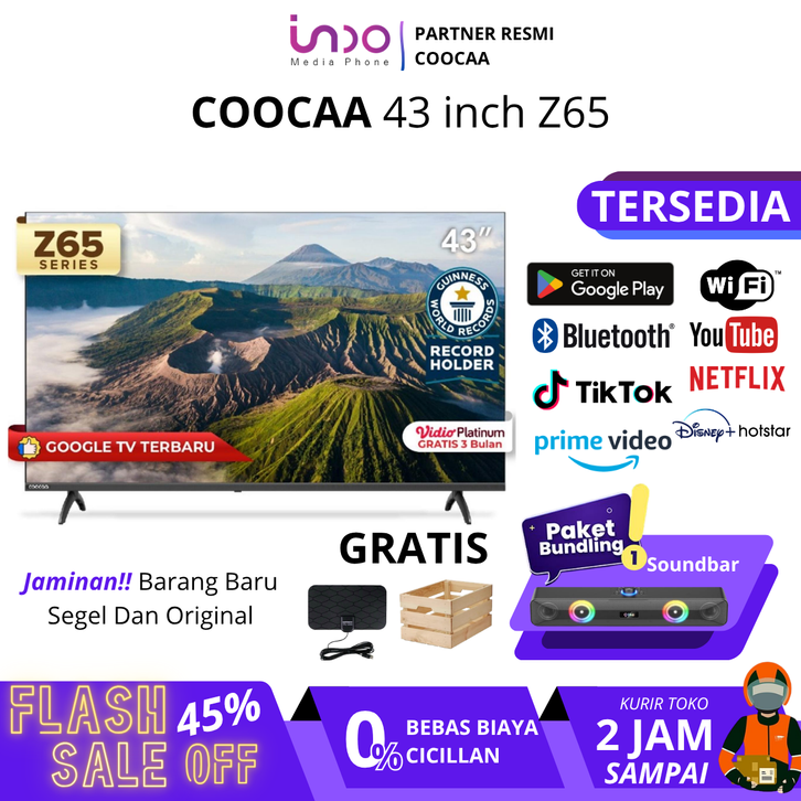 COOCAA 43 inch Z65 TV 2K Google TV -Low Blue Light- Dobly Audio - Flicker Free - LCD/LED Digital TV - Google Assistant