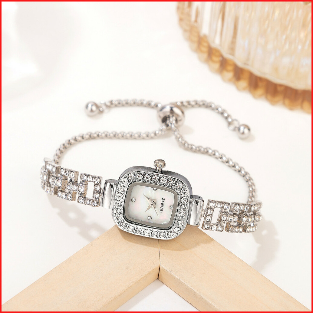 Jam Tangan Gelang Kuarsa Wanita Gelang Gelang Serut Yang Dapat Disesuaikan Model Bebas Skala Sederhana Dengan Dial Kecil