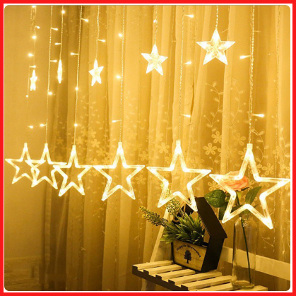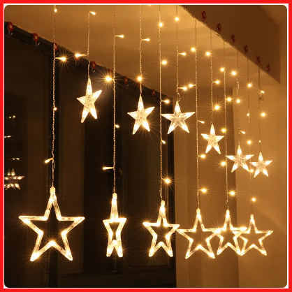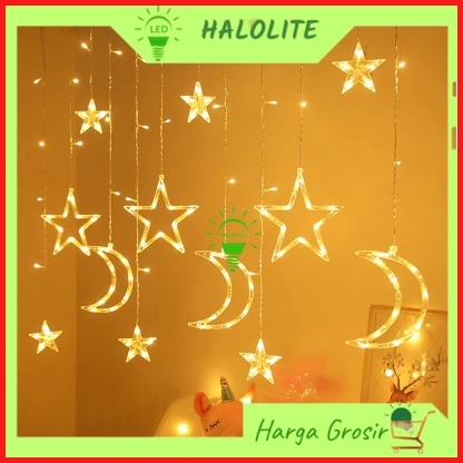 Lampu Natal Tirai Bintang Bulan Led Tumblr Light Tirai Led Star Curtain Light Wedding Warmwhite