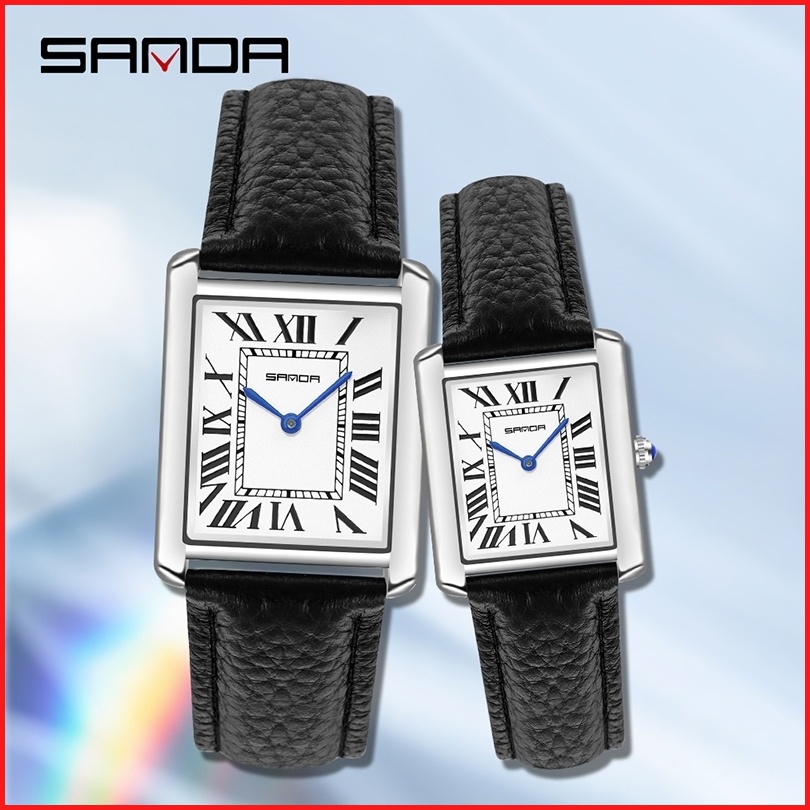 Sanda Jam Tangan Pasangan Merek Mewah Baru Jam Tangan Kuarsa Tahan Air Pria Wanita Jam Tangan Persegi Wanita Tali Kulit