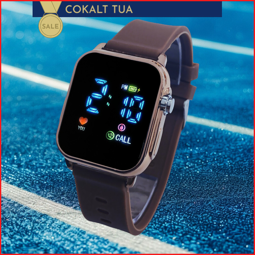 Promooooo Jam Tangan Led Watch Kotak Pria Wanita Tahan Air Bahan Case Stainless Strap Rubber