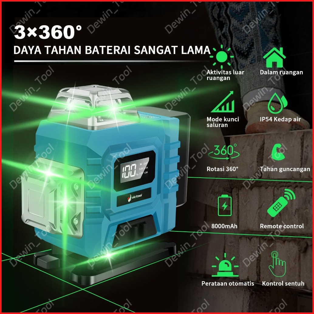 Dewin Laser Tukang Bangunan 16 Line Waterpass Laser Baterai 2