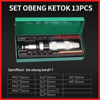 Isku Obeng Ketok Set 13pcs Obeng Set Putar Set S2 Drill Bit Bahan Non-karat Impact Screwdriver Set Box Besi Obeng Ketok
