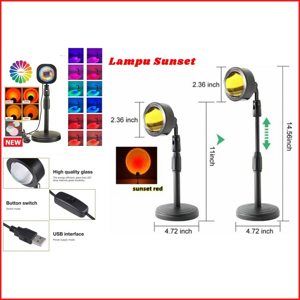 Lampu Sunset Proyektor Led Lampu Tidur Motif Matahari Terbenam Warna Rainbow Sunset Red Termurah